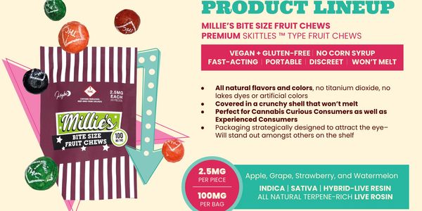 Bursting with mouthwatering fruit flavor our Millie's bite size fruit chews are made with premium quality flavors, natural colors, no corn syrup. Soft chewy center covered in a candy shell that won't melt.